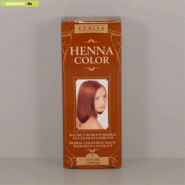 Szépségápolási termékek rovaton belül a(z) "Henna Color szinező hajbalzsam nr 7 rézvörös 75 ml" című hirdetést látja. (fent)