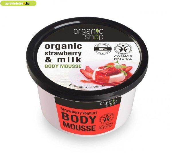 Szépségápolási termékek rovaton belül a(z) "Organic Shop bio eper joghurt testápoló krém 250 ml" című hirdetést látja. (fent)