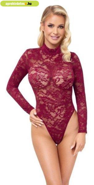 Exkluzív díszcsipke igényes bordó színben! A Cottelli LINGERIE hosszú ujjú body,