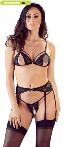 Ez a rendkívül szexi háromrészes csipke harisnyakötő szett virágos csipkéből