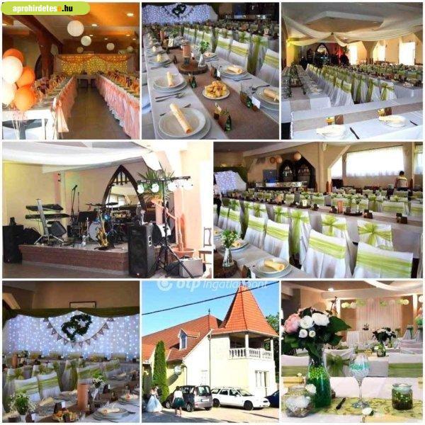 rendezvényterem, melegkonyhával, előkészítő és kiszolgáló helyiségekkel, bárral,