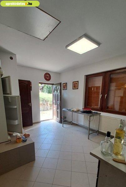 valamint raktár.A vendégtérből egy gyönyörű, kitéglázott, gádoros 70 m2-es