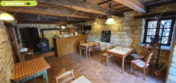 Eladó üzleti ingatlanok rovaton belül a(z) "Bejáratott 6 szobás vendégház kávézóval és borospincével Erd" című hirdetést látja. (fent)