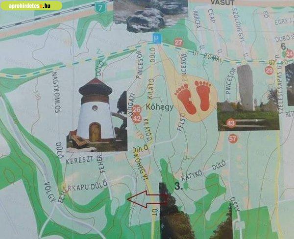 összességében 5442 m2-es, lankás, domboldali terület, amelyet 2 hrsz-en