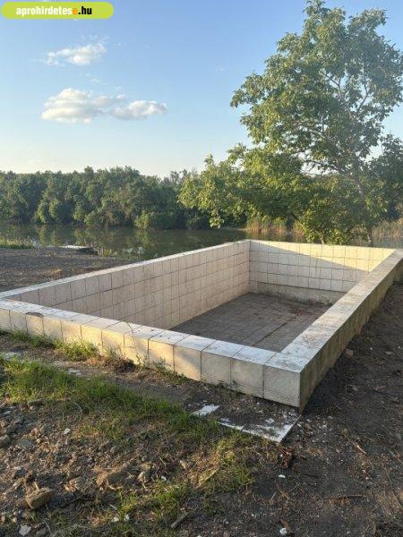található egy 8 x 4 -es 1,6 m mély betonozott medence, továbbá egy betonozott