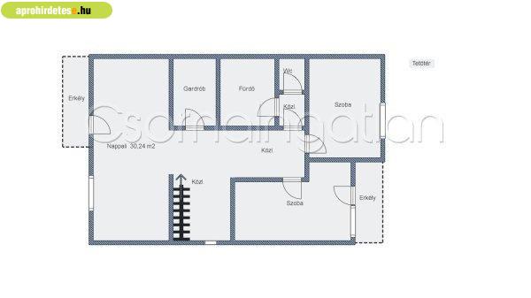 helyiségekTetőtér- tágas nappali erkéllyel- 2 szoba (egyik erkélyes)- gardrób-
