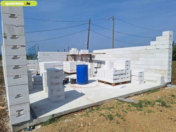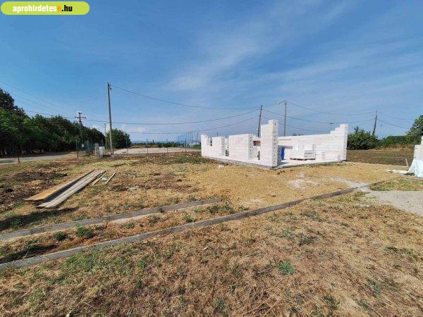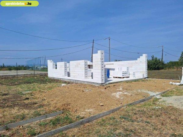 technikával épül, jelenleg a falazás történik.A telek körbe kerített, 800 m2,