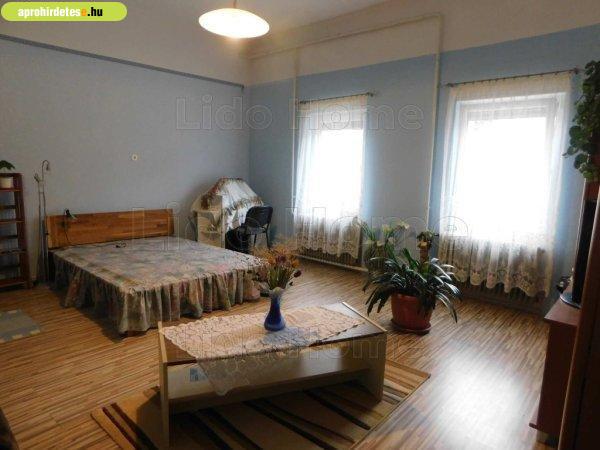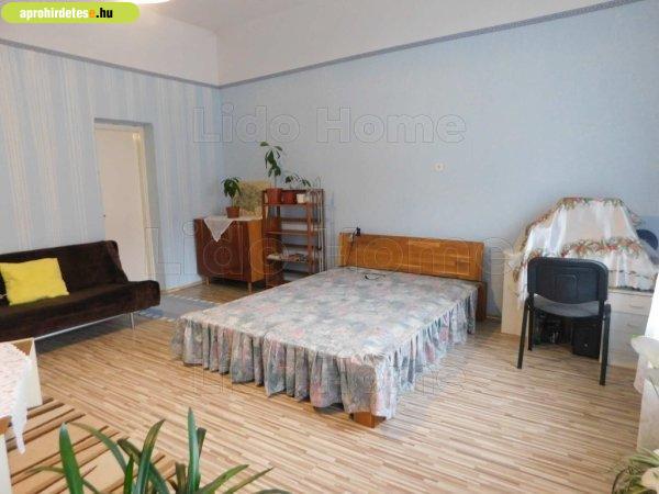 tágas 29 m2-es szoba, melyből egy ajtó mögötti lépcsősoron jutunk le a 2.