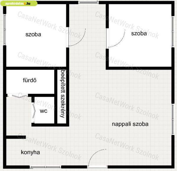 nappali szoba, konyha, közlekedő, fürdőszoba, külön illemhelyiség, 2 külön nyíló