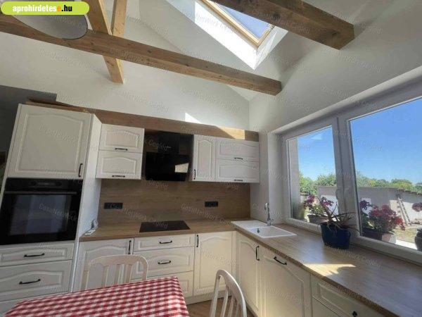 hiányzik.Konyhája gépesített, minden konyhai gép garanciális. A telek előtt