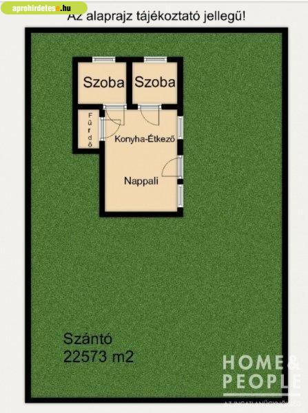 paraméterek:- terület: 22573 m2- lakótér: 60m2- 2 szoba+nappali+konyha étkező,