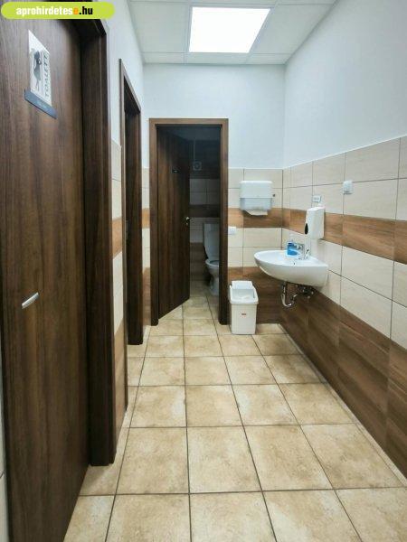 illemhelyiség: 2db WC, 2 db piszoár, 1 db kézmosó, 1 db zuhanyzó- női