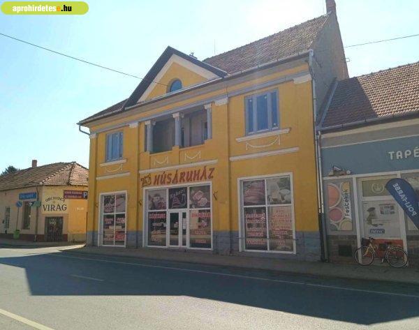 társasház.A földszinten (volt "Kukori Húsáruház") 140 m2- es nagy üvegportálos