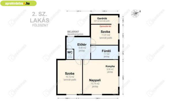 tájolású - egy 13 m2-es keleti tájolású szoba és 16 m2-es szoba opcionálisan