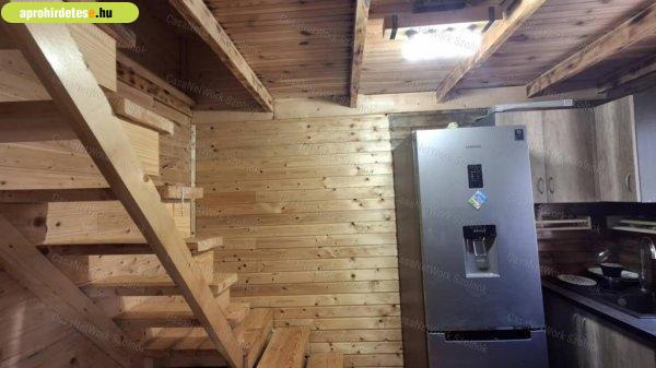 könnyűszerkezetes fából épült, szigetelt üdülőövezeti nyaralót, rendezett